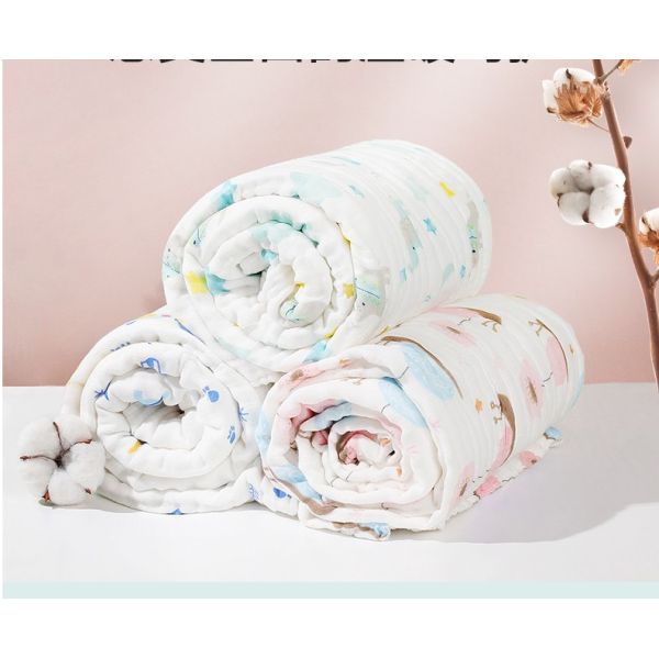 Pure cotton three-layer gauze reactive printed cloth has many advantages: 1. The smell is fresh and natural. Pure cotton gauze is a natural green environmental protection product, without any chemical additives, and there is no abnormal odor due to climate change that will damage the body. 2: The heat storage capacity is strong. After the pure cotton fiber is irradiated by sunlight, the fiber elasticity is restored, elongated, and the heat storage is large, and the thickness of the quilt is increased. 3. Good ventilation performance. Cotton fiber is a natural product, slender and tough, not easy to break, and will not fall off due to fine fluff, which will affect the air in the room and cause discomfort in the throat and lungs of the occupants. .4 Static free. Cotton is pure plant fiber, no static electricity will occur. No nutrients and no bacteria growth. 5. Cotton comes from nature. The pure cotton quilt is soft, comfortable and natural. After covering it, there is a kind of sticking. The feeling of returning to nature, the user will enter a deep sleep state.